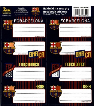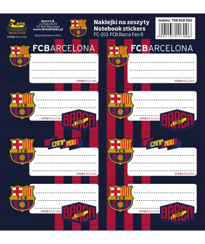 Naklejki na zeszyty FC BARCELONA Barca ASTRA 8szt. MIX WZORÓW 1 arkusz