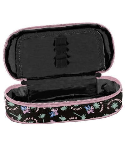 Piórnik STITCH & ANGEL saszetka z klapką PASO czarny różowy w kwiatki