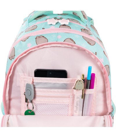 Plecak PUSHEEN z sercem miętowy trzykomorowy 22L- szkolny do klasy 1-3 St.Majewski BP58 - PUSHEEN MINT