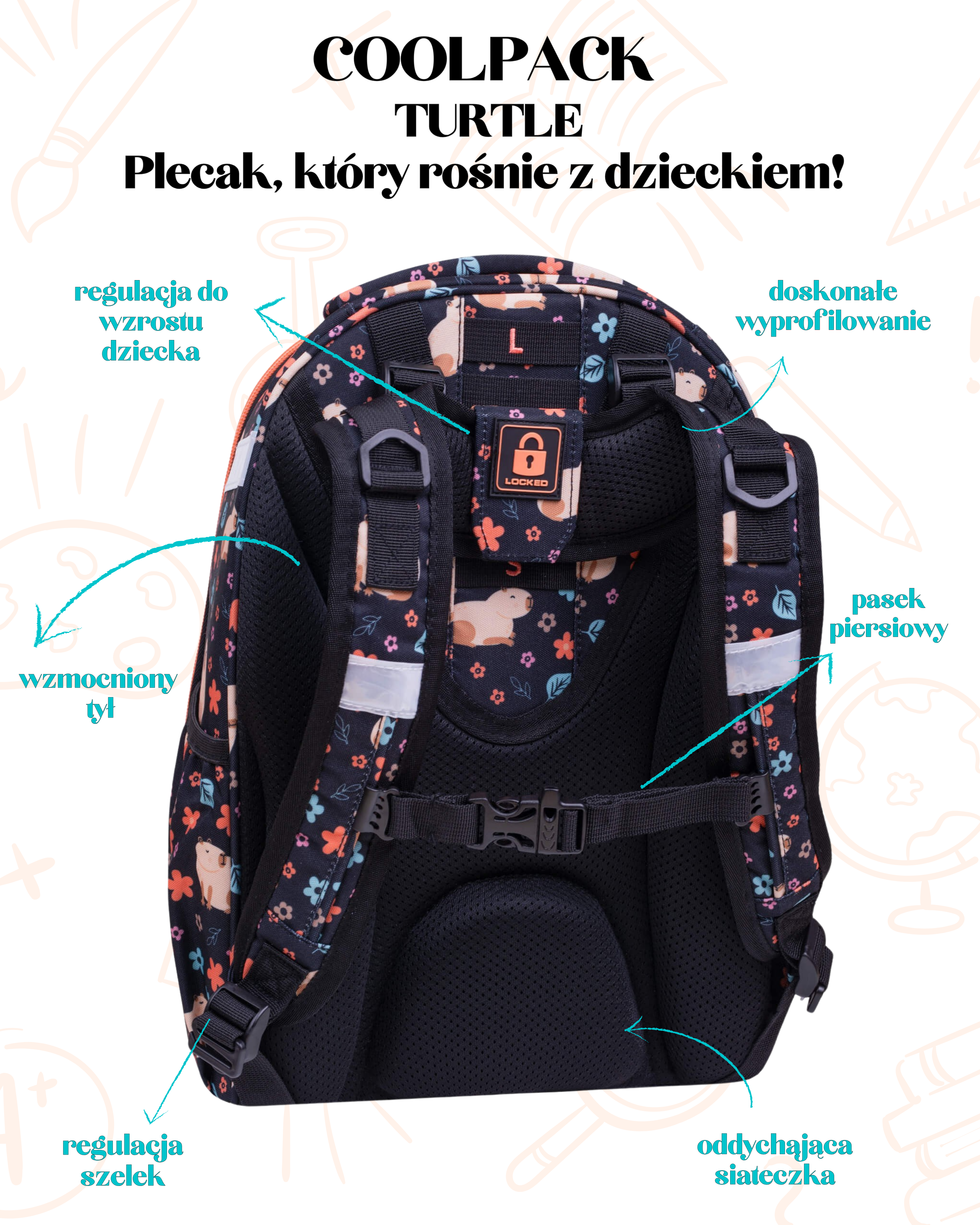 Szukasz plecaka szkolnego, który będzie przyjazny dla kręgosłupa Twojego dziecka. Postaw na nasze plecaki ergonomiczne! Czym różnią się od zwykłych plecaków? Przede wszystkim łączą najlepsze cechy plecaków i tornistrów. Mają kilka przegród oraz dodatkowe kieszenie wewnętrzne jak plecaki. Usztywniony korpus, wzmocnione dno i stabilizacja upodobniają je natomiast do tornistrów. Tym co wyróżnia plecaki ergo, jest wyprofilowany tył z kilkoma systemami regulacji, dzięki czemu możemy je dopasować do wzrostu i sylwetki dziecka. W plecaku ergonomicznym możemy wyregulować nie tylko długość szelek, ale również wysokość ich mocowana. Plecak będzie mógł rosnąć razem z dzieckiem. Pas piersiowy sprawia, że szelki nie będą zsuwały się z ramion dziecka. Polecamy plecaki ergonomiczne dla dzieci w klasach 2-4 szkoły podstawowej. Łatwo je rozpoznać, gdyż przypominają skorupę żółwia. W naszej ofercie znajdą Państwo plecaki tego typu kilku marek, m.in. CoolPack Turtle, Topgal, ST.RIGHT, czy BackUP!