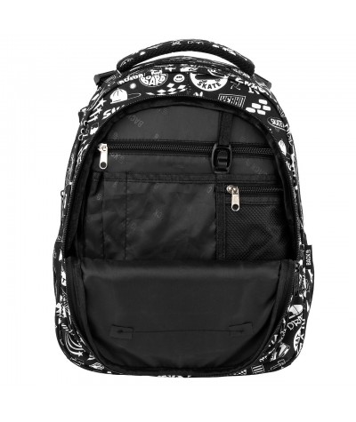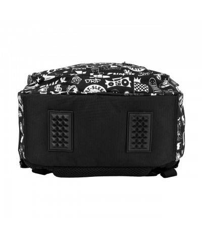 Czarny plecak z ciekawym białym pirntem z kolekcji BackUP