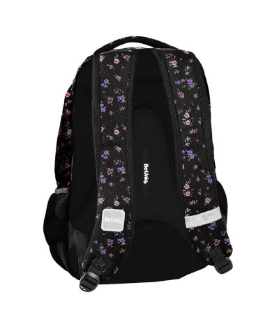 Plecak szkolny z kwiatami - klasa 1-3 PASO BeUniq 21L czarny w drobne kwiatki
