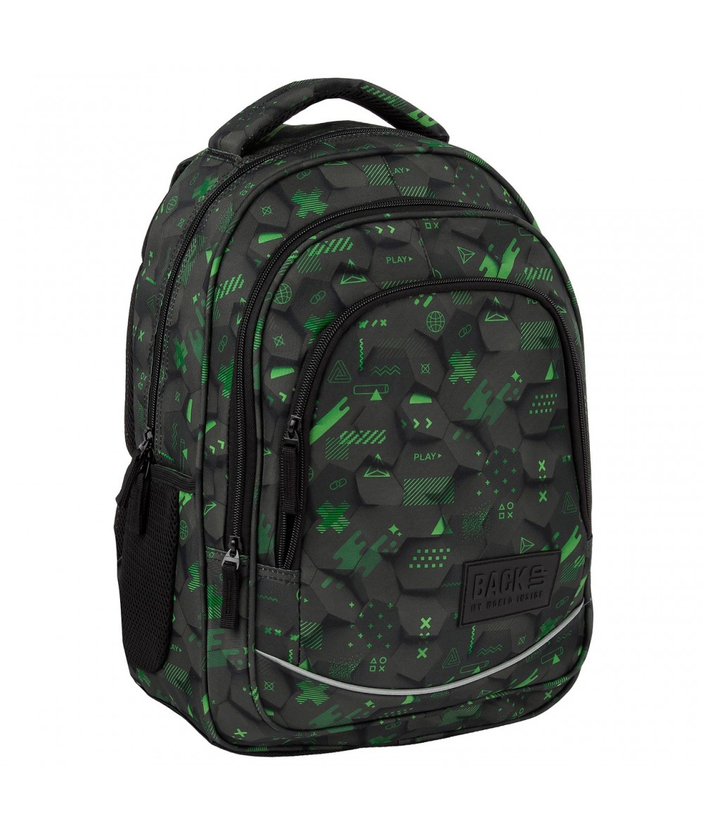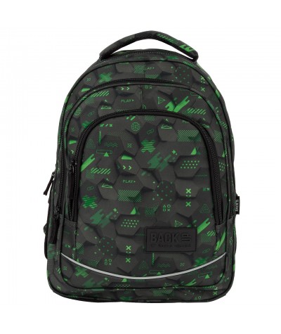 Plecak szkolny do klas 4-7 BackUP w piksele 3D dla gracza czarny zielony 26L - X63