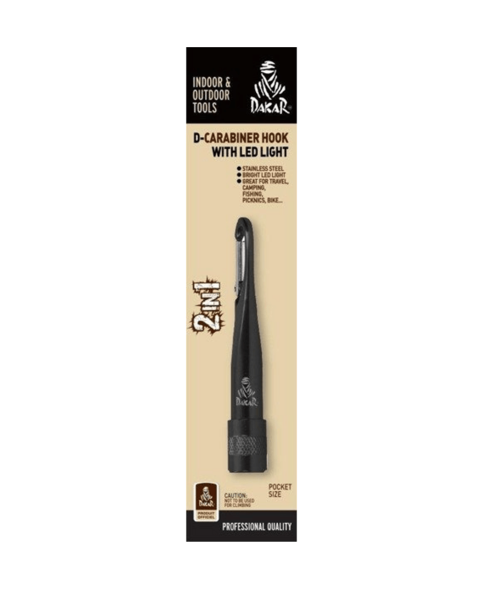 Latarka z karabińczykiem 2w1 DAKAR czarna Argus do plecaka stal nierdzewna