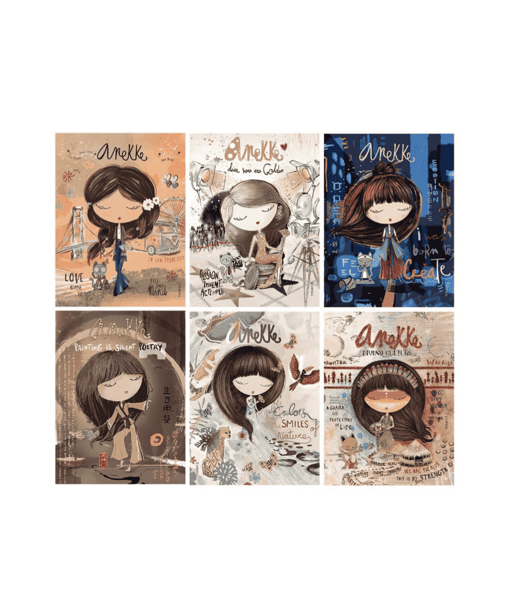Przepiękny notes z kolekcji Anekke – hiszpańskiej, uroczej laleczki. Idealny dla wszystkich, którzy kochają kobiecy styl, subtelne kolory i inspirujące detale. Notes w poręcznym formacie A6 – zmieści się w każdej torebce czy plecaku. Wewnątrz znajduje się 25 kartek w linie, które świetnie sprawdzą się na zapiski, listy, notatki czy marzenia. Okładki dostępne w różnych wzorach – każda opowiada inną historię Anekke i przenosi do świata pełnego emocji, pasji i nostalgii.