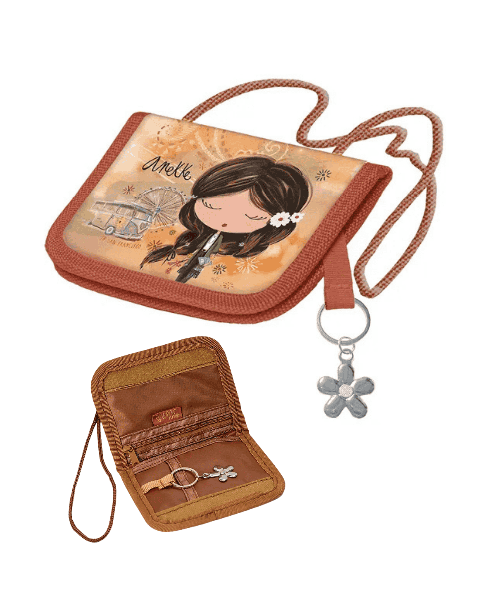 Uroczy portfelik z kolekcji Anekke, idealna dla małych i dużych miłośniczek stylu boho i bajkowych ilustracji! Ten portfel to nie tylko praktyczny gadżet, ale również stylowy dodatek, który podkreśli indywidualność i zamiłowanie do bajkowego świata Anekke. Zamykanie na rzep dla łatwego i szybkiego dostępu. Wewnętrzna kieszonka na zamek na monety oraz przegródki na karty. Sznureczek do noszenia na szyi – idealna do szkoły, wycieczki czy na zakupy