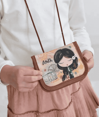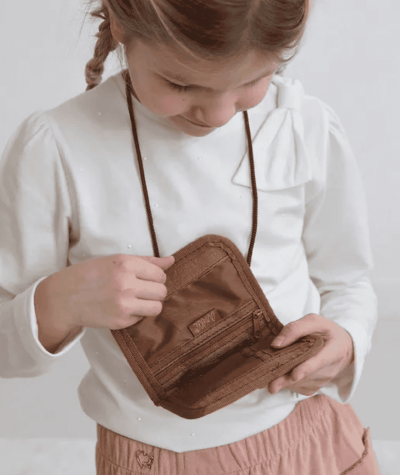 Portfel na szyje ANEKKE mały dziecięcy ze sznurekiem brązowy Love to share