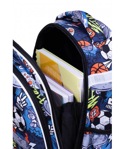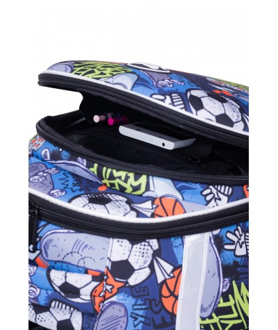 Kolekcja HOBBY to wzór przepełniony aktywnościami, które uwielbiają dzieciaki - od piłki nożnej po jazdę na deskorolce. Propozycja dla aktywnych dzieci, które zaczynają szkolną przygodę! Coolpack Turtle to przemyślany układ przegród i kieszeni, które umożliwiają łatwe uporządkowanie książek, zeszytów, śniadaniówki oraz bidonu. Warto wspomnieć o usztywnianych plecach z systemem wentylacji!