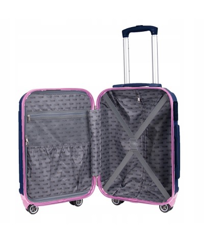 Mała Walizka podróżna PASO ABS do samolotu - GRANATOWA z różem - 21x34x55cm 40L